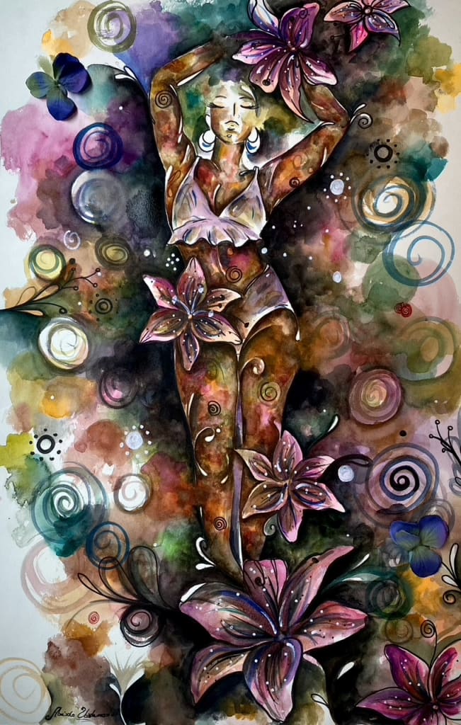 In regards to if my art has evolved, it has. I’ve been creating since I was 3 but I only started pursuing it professionally in 2015. I don’t think I’ve ever been able to stick to a particular ‘art style’, my art style changes as my consciousness evolves. Usually, when I’m creating I’m in a state of ‘flow’. I think this also reflects in my internal self-image so I would say my paintings have definitely changed over the past years and will continue to do just that.