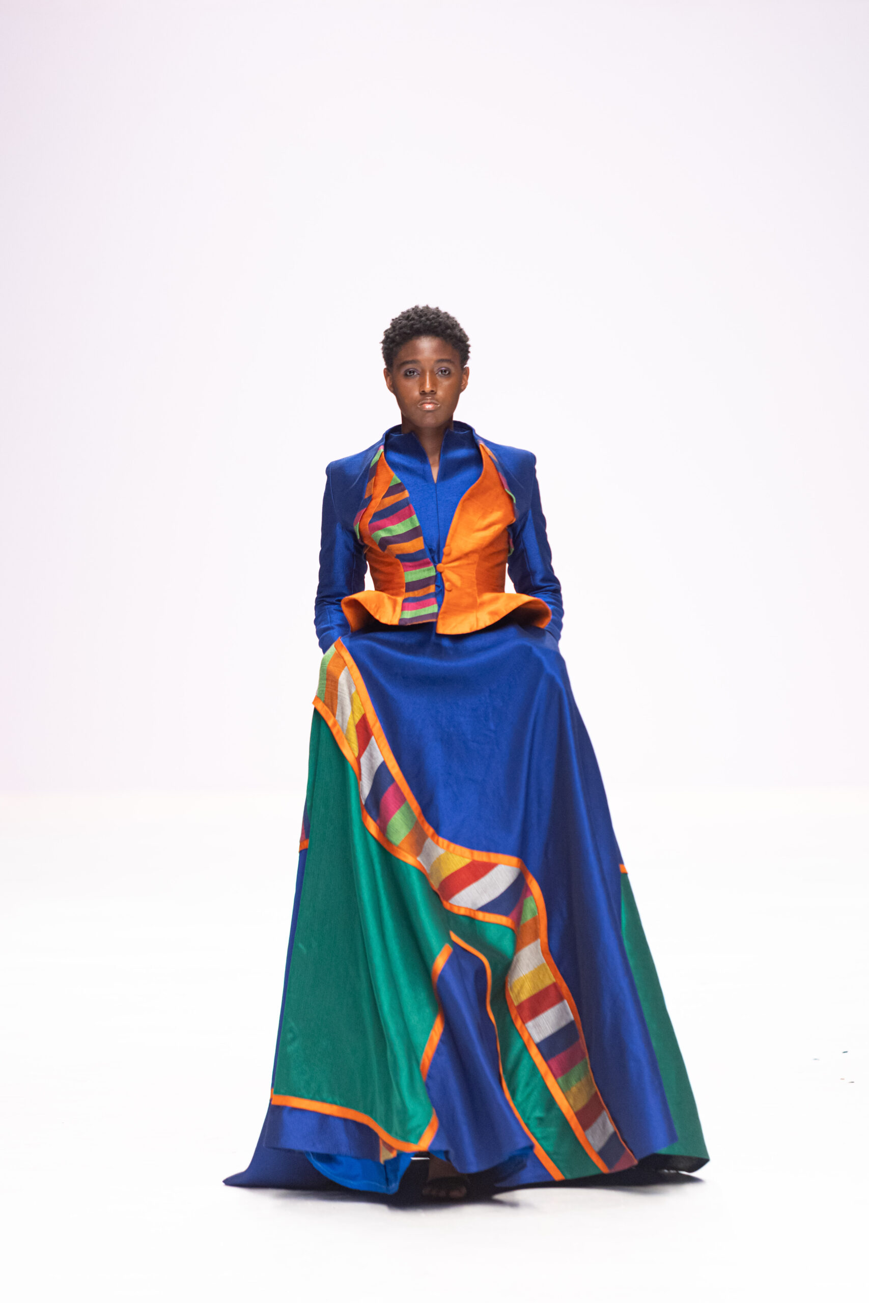 In this debut women’s wear collection, the Senegalese culture and heritage were prominently showcased. That’s why bright colors like orange, green, and blue with intricate cuts and unmissable silhouettes were used.